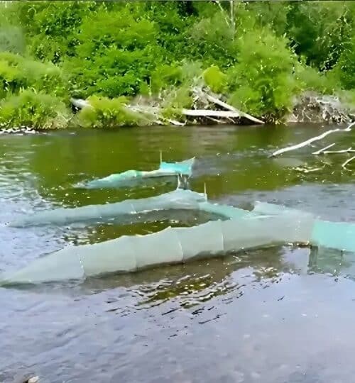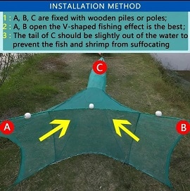 פתח ראשי עם שני קירות מובילים לקונוס ארוך אליו נכנסים הדגים.